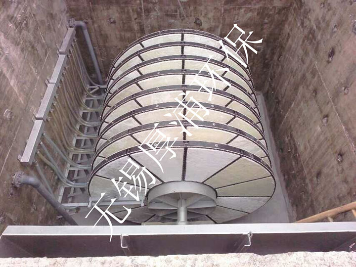 纤维转盘过滤器是使液体通过一层滤料的机械筛滤作用取出悬浮于液体中的微小颗粒物质。过滤器所使用的滤料由金属、化纤等多种合成材料以不同方式编织而成,过滤孔径一般为10~1000um。主要应用于市政污水处理厂深度处理,工业工艺用水的过滤,以及中水的回用。可替代砂滤池,设置于常规活性污泥法、SBR系统、CASS系统、延时曝气法、氧化沟系统、滴滤池系统、氧化塘系统之后,主要用于去除总悬浮物,结合投加药剂可去除部分总磷、浊度、COD等。